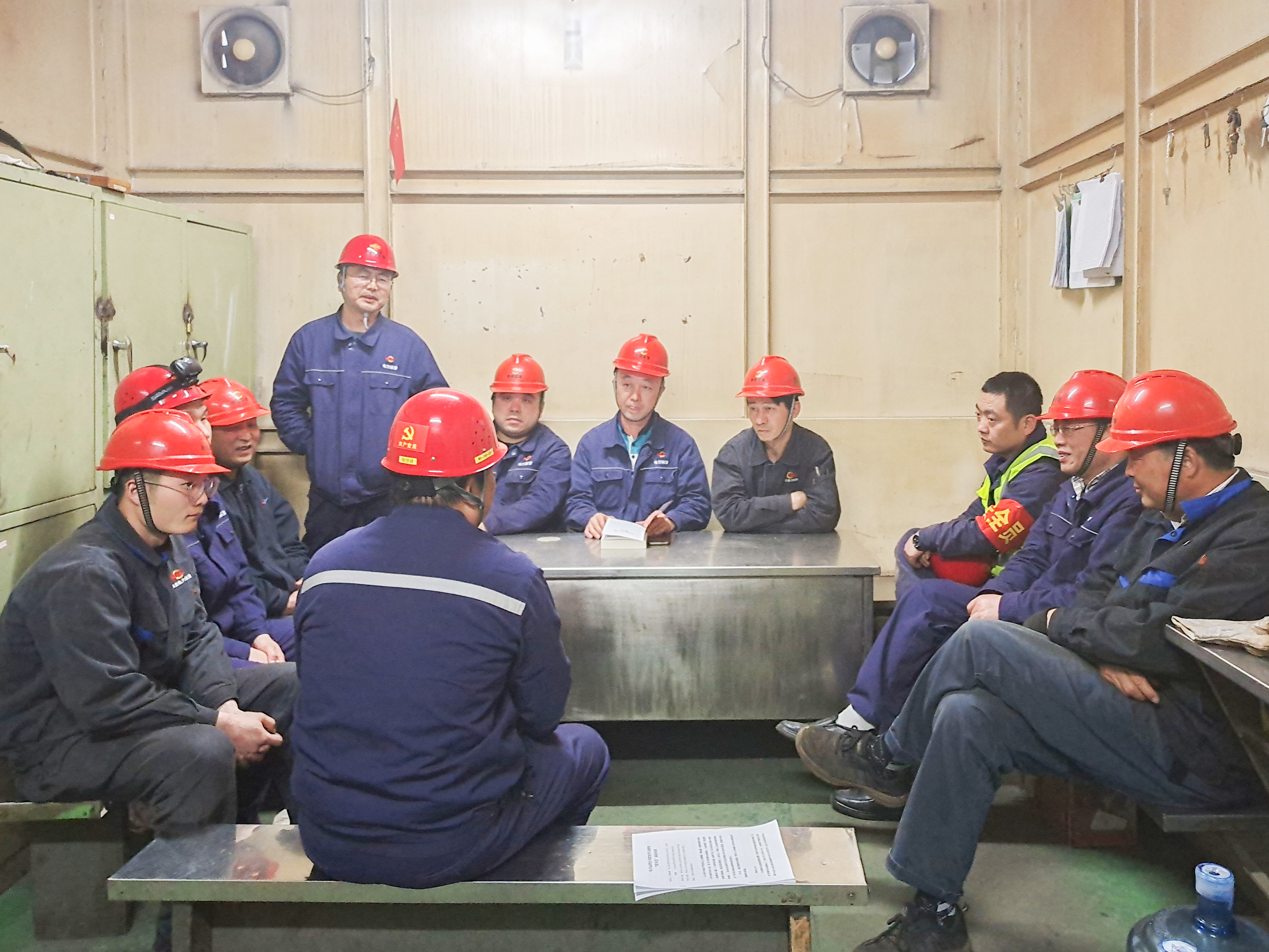 現(xiàn)場臨時休息室內(nèi),支部委員和剛走下作業(yè)平臺的黨員們圍桌而坐,支部書記喻繼峰、副書記楊瑞帶領(lǐng)大家學(xué)習(xí)了黨史中“黨的七大召開和毛澤東思想的確立”相關(guān)內(nèi)容,并結(jié)合各自工作,和大家分享了七大精神和毛澤東思想在當(dāng)下的現(xiàn)實意義。隨后,黨員們聯(lián)系各自實際,說百年黨史、談個人感悟、話企業(yè)發(fā)展,現(xiàn)場氣氛隨著話題的深入越來越熱烈起來。