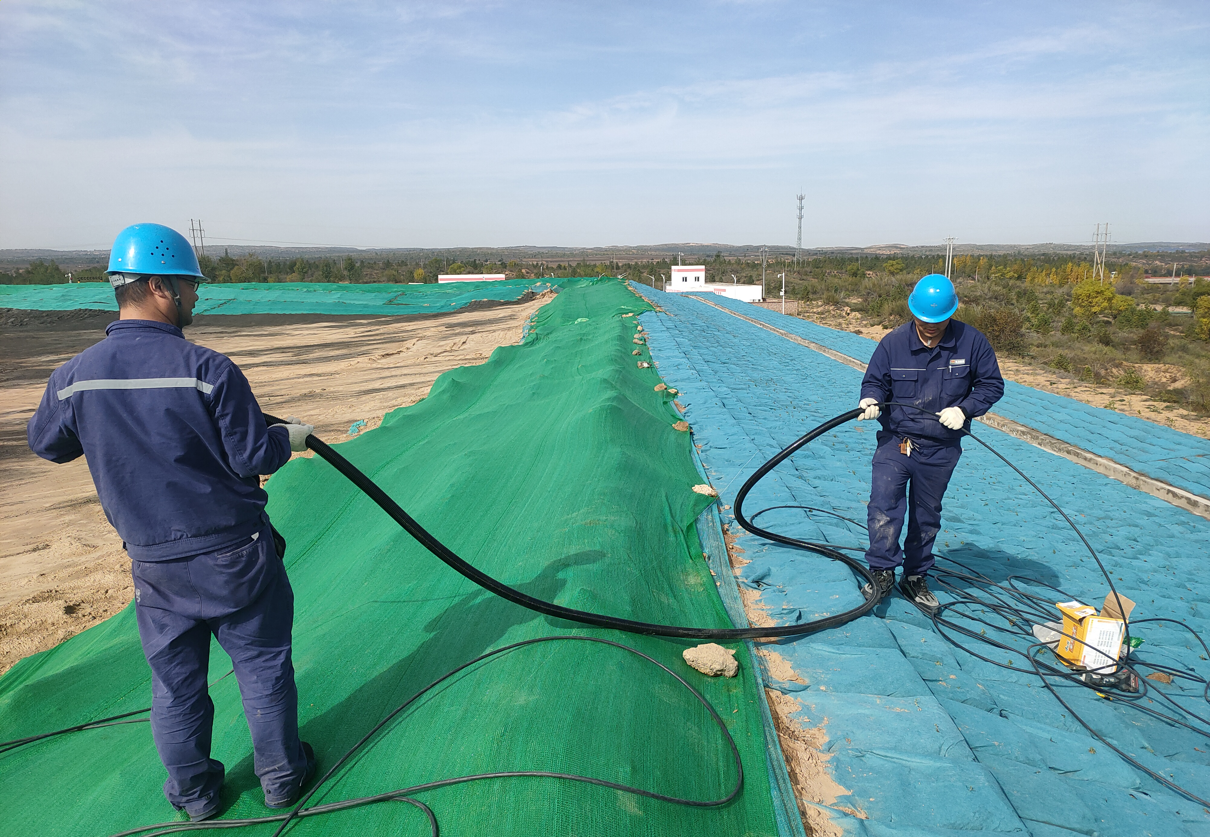 10月中旬的陜北地區(qū)最低溫度已降至零下4度,趙石畔項目部為保障各涉電企業(yè)設備平穩(wěn)運行,確保裝置安全過冬,對趙石畔煤電灰廠噴灑水電伴熱進行了集中改造治理。灰廠內物料搬運不便、道路難行,大家頂著寒風肩扛手挑,將電纜、鍍鋅管搬運到工作地點,握著冰涼的鋼管鋪設電纜,到晚上又要轉接供電線路。經過三天的連續(xù)奮戰(zhàn),共改造完成噴灑水裝置7臺、轉接供電線路400余米,實現(xiàn)送電、試運一次成功,現(xiàn)已經全部投入使用。天氣雖然冷,心里卻是溫暖的,設備也一樣能夠“溫暖安心”度過這個冬天了!