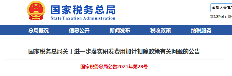 為貫徹落實(shí)國(guó)務(wù)院激勵(lì)企業(yè)加大研發(fā)投入、優(yōu)化研發(fā)費(fèi)用加計(jì)扣除政策實(shí)施的舉措,讓納稅人充分享受政策紅利,激勵(lì)企業(yè)增加研發(fā)投入積極性,方便企業(yè)提前享受研發(fā)費(fèi)用加計(jì)扣除優(yōu)惠政策,國(guó)家稅務(wù)總局制發(fā)《關(guān)于進(jìn)一步落實(shí)研發(fā)費(fèi)用加計(jì)扣除政策有關(guān)問(wèn)題的公告》(2021年第28號(hào),以下簡(jiǎn)稱《公告》)