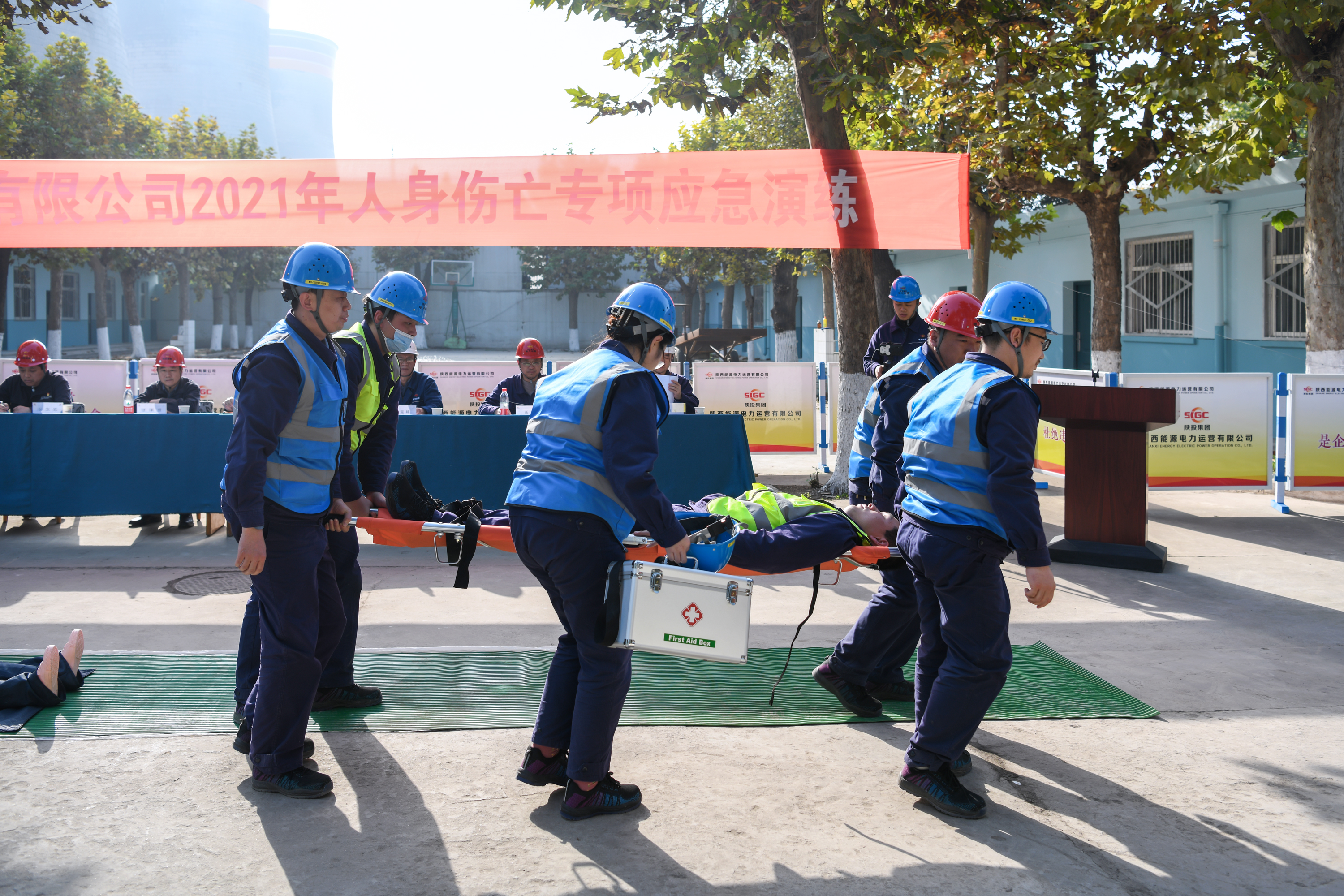 10月29日下午3時,隨著公司副總經(jīng)理、演練總指揮武紅幸發(fā)布開始命令,公司2021年人身傷亡事故專項應(yīng)急演練在渭河項目部拉開帷幕。渭河發(fā)電公司相關(guān)領(lǐng)導(dǎo)及公司安全副總監(jiān)陳振峰到場進行觀摩指導(dǎo)。