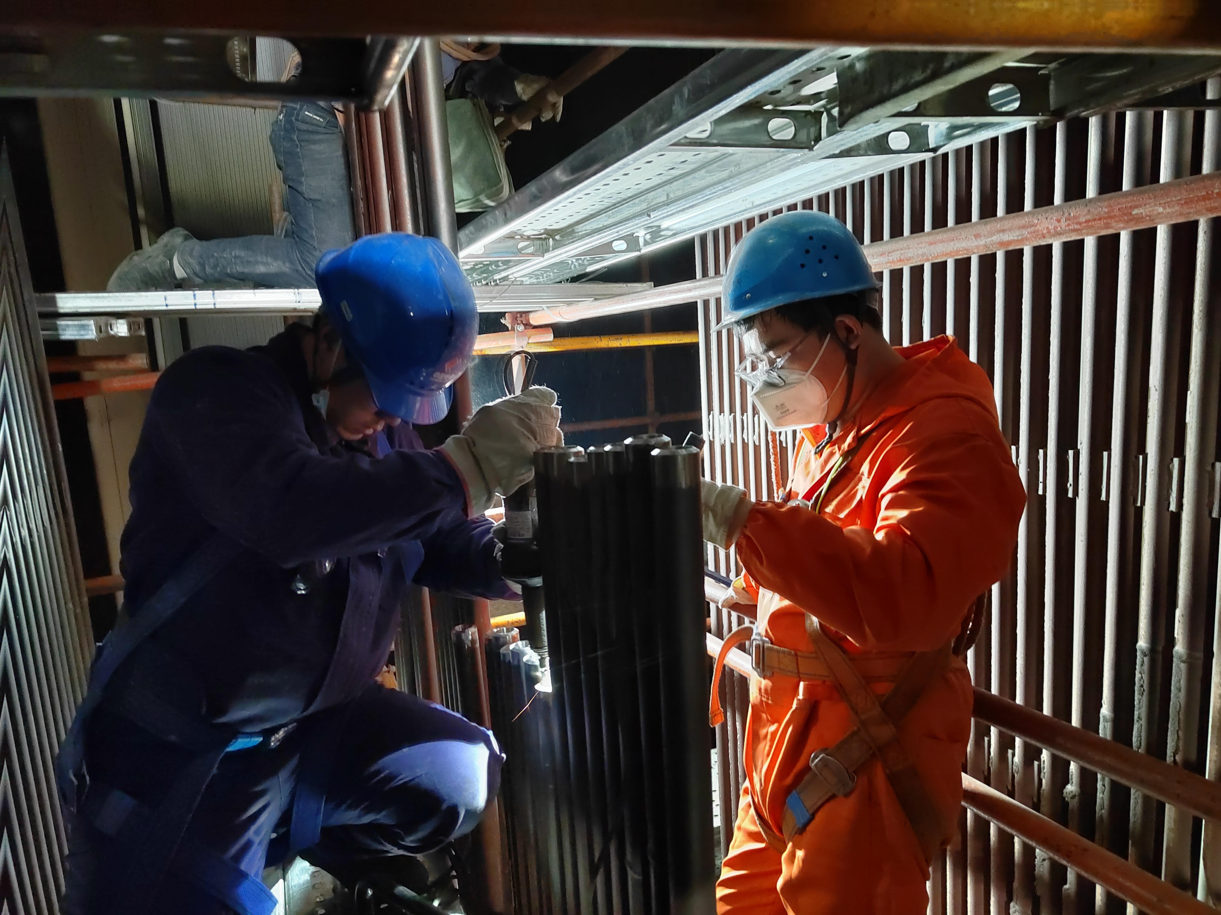 開(kāi)工后,項(xiàng)目部嚴(yán)格把控受限、動(dòng)火、起重、高空等危險(xiǎn)性較大作業(yè)規(guī)范,對(duì)檢修項(xiàng)目進(jìn)行全方位監(jiān)督,實(shí)時(shí)掌握檢修動(dòng)態(tài),針對(duì)問(wèn)題及時(shí)協(xié)調(diào)處置。檢修人員分為兩班24小時(shí)不間斷作業(yè),所有作業(yè)人員在現(xiàn)場(chǎng)進(jìn)行交接班,綜合辦主動(dòng)做好后勤保障,送飯送水到現(xiàn)場(chǎng)。