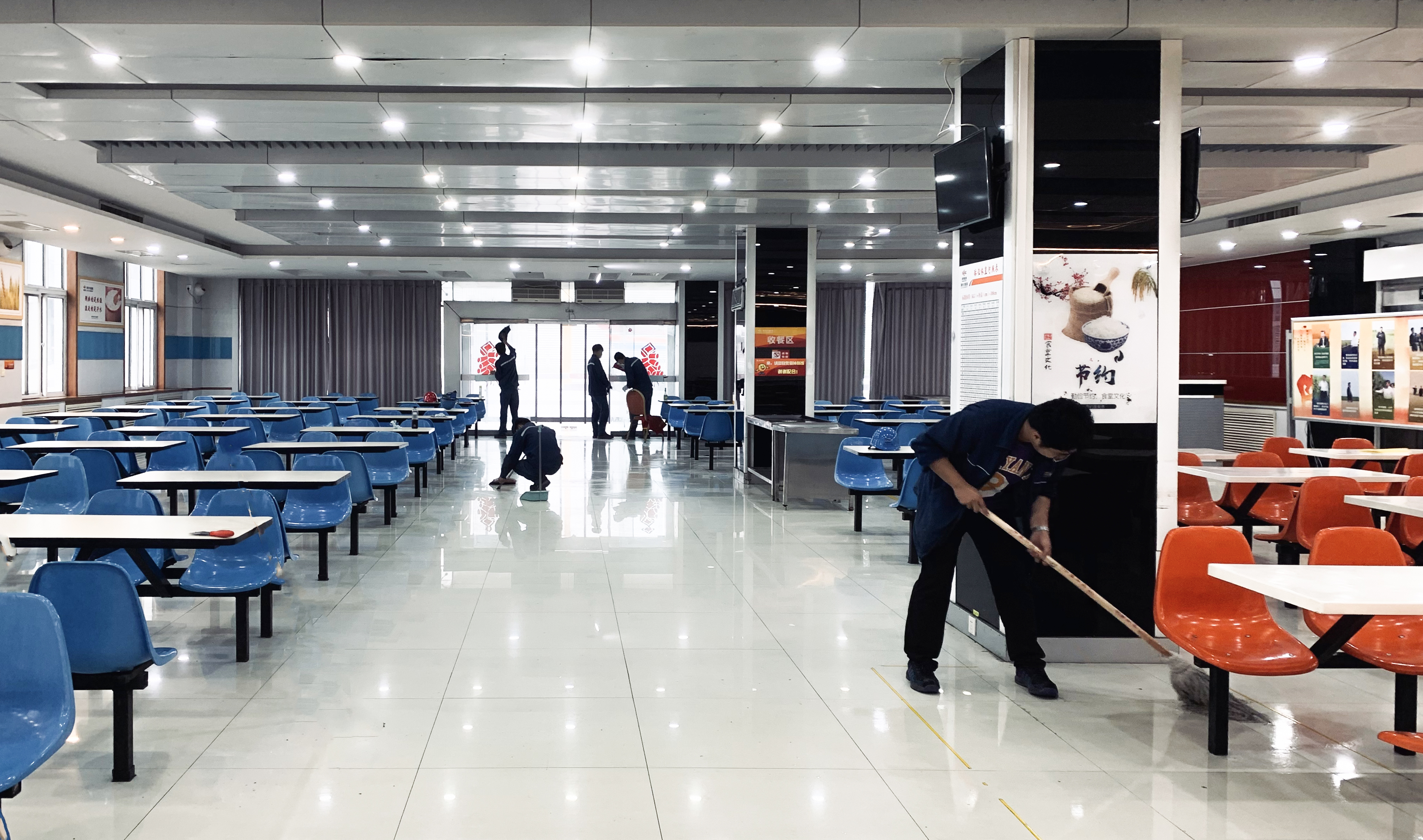 項目部原餐廳位于駐地臨建房內(nèi),冬冷夏熱且周邊環(huán)境衛(wèi)生狀況不佳。公司及業(yè)主方領(lǐng)導(dǎo)看在眼里、急在心上,經(jīng)過多次協(xié)調(diào)溝通,最終業(yè)主方?jīng)Q定將原清能職工餐廳交項目部使用。為盡早改善就餐環(huán)境,項目部綜合辦克服時間緊、任務(wù)重的重重困難,組織人員徹底清理餐廳操作間衛(wèi)生,修補(bǔ)更換破損的地面,檢查改造電路、開關(guān)及進(jìn)排水系統(tǒng)。經(jīng)過一個月的奮戰(zhàn),終于如期完成了整體清理維修工作,餐廳面貌煥然一新,正式迎來搬遷之喜。