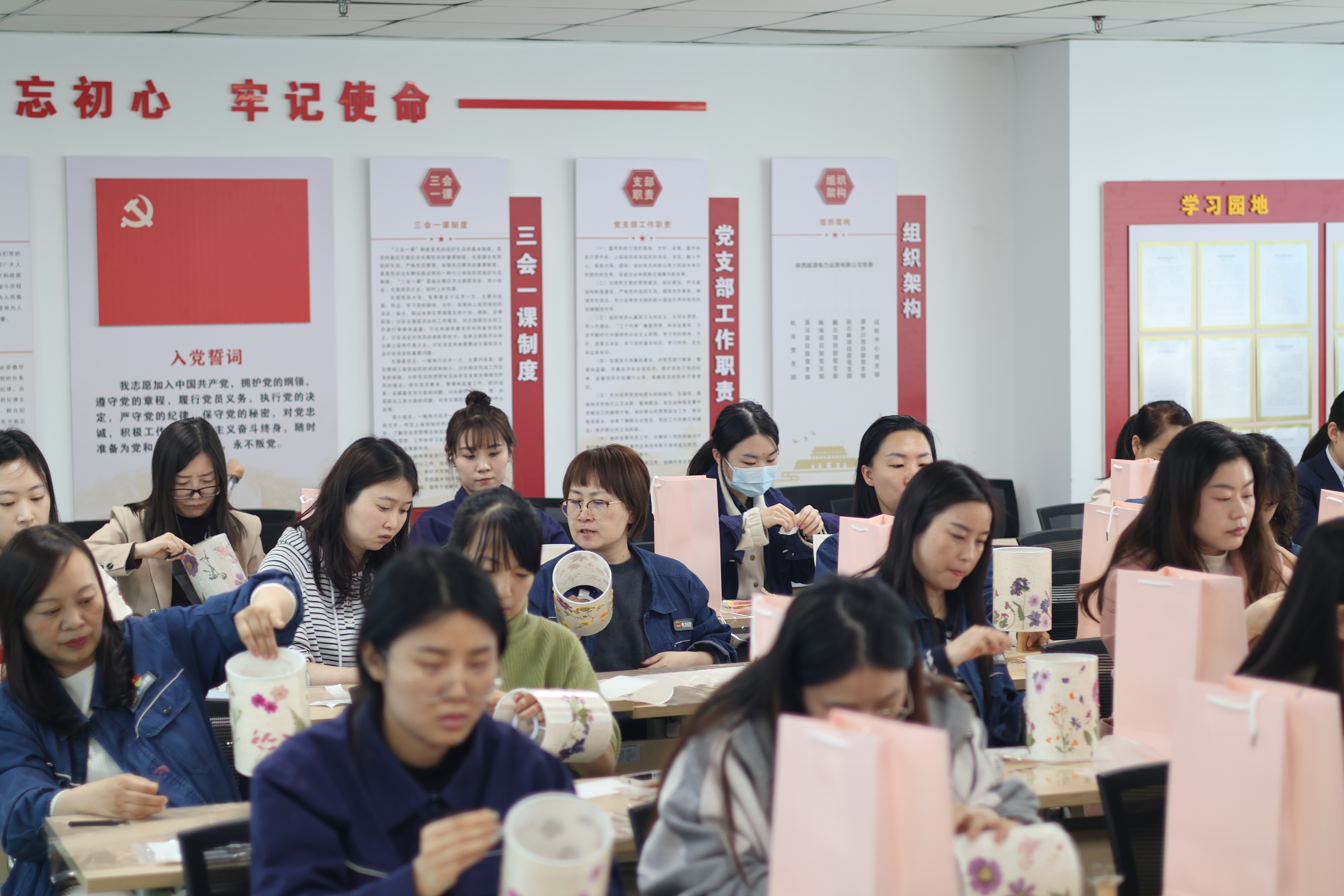君創(chuàng)科技、機(jī)關(guān)分工會(huì)女職工發(fā)揮想象力,修整、裁剪花朵、莖葉,將壓花素材藝術(shù)性地構(gòu)圖、粘貼,做成一盞盞獨(dú)一無二的壓花手工臺(tái)燈,為自己送上最美“三八”節(jié)禮物。