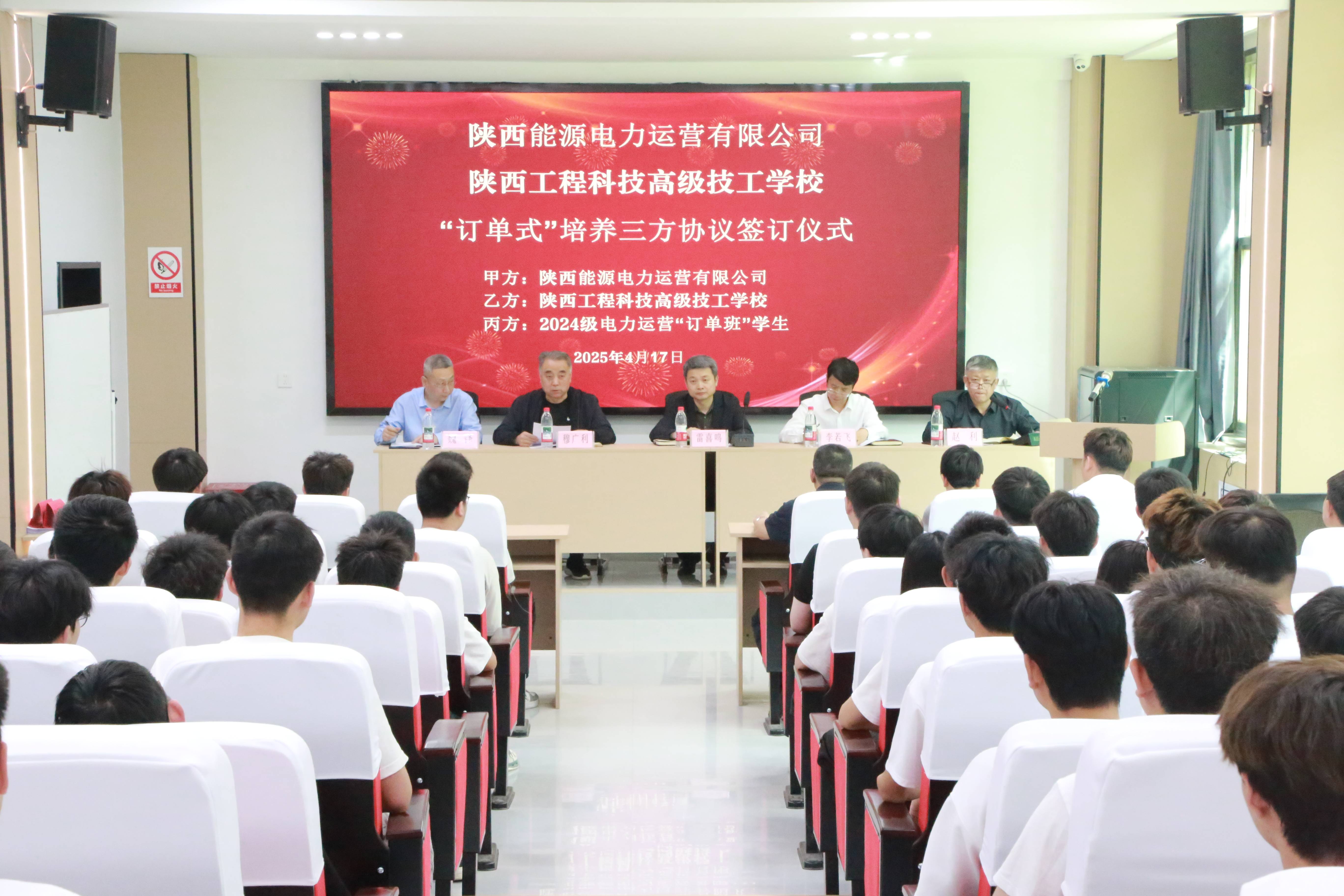 4月17日,公司與陜西工程科技高級(jí)技工學(xué)校舉行《“訂單式培養(yǎng)”三方協(xié)議》簽訂儀式。