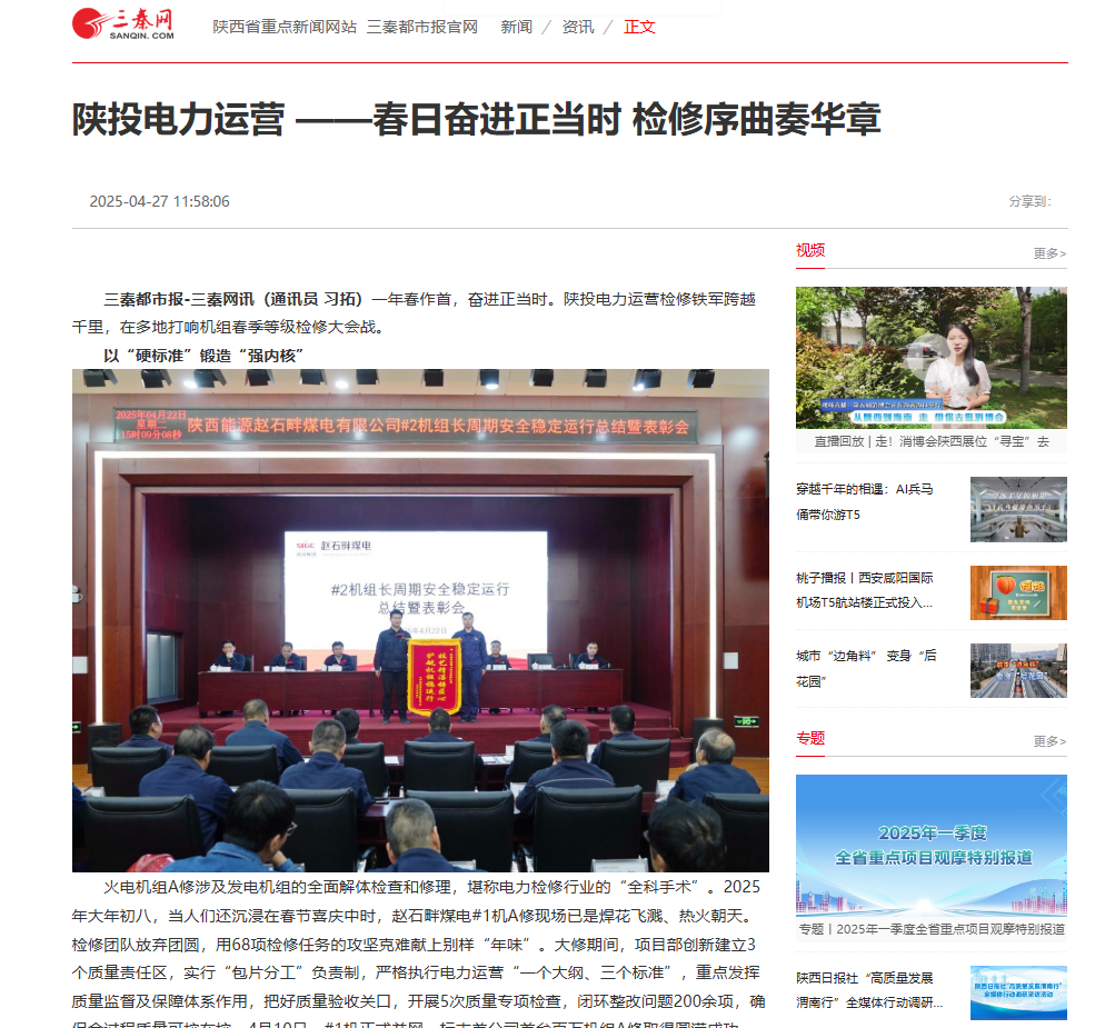 火電機組A修涉及發(fā)電機組的全面解體檢查和修理,堪稱電力檢修行業(yè)的“全科手術(shù)”。2025年大年初八,當人們還沉浸在春節(jié)喜慶中時,趙石畔煤電#1機A修現(xiàn)場已是焊花飛濺、熱火朝天。檢修團隊放棄團圓,用68項檢修任務的攻堅克難獻上別樣“年味”。大修期間,項目部創(chuàng)新建立3個質(zhì)量責任區(qū),實行“包片分工”負責制,嚴格執(zhí)行電力運營“一個大綱、三個標準”,重點發(fā)揮質(zhì)量監(jiān)督及保障體系作用,把好質(zhì)量驗收關口,開展5次質(zhì)量專項檢查,閉環(huán)整改問題200余項,確保全過程質(zhì)量可控在控。4月10日,#1機正式并網(wǎng),標志著公司首臺百萬機組A修取得圓滿成功。