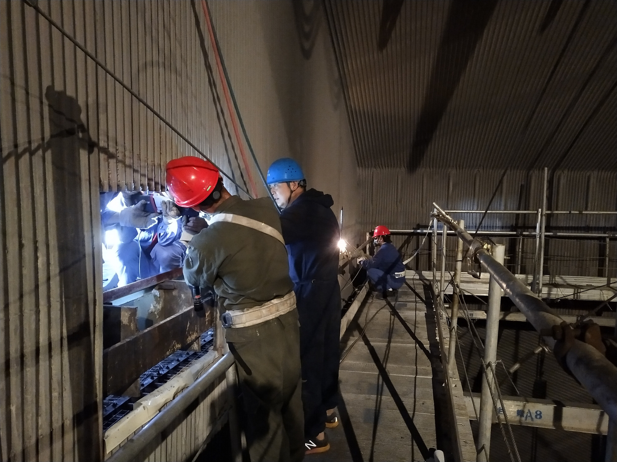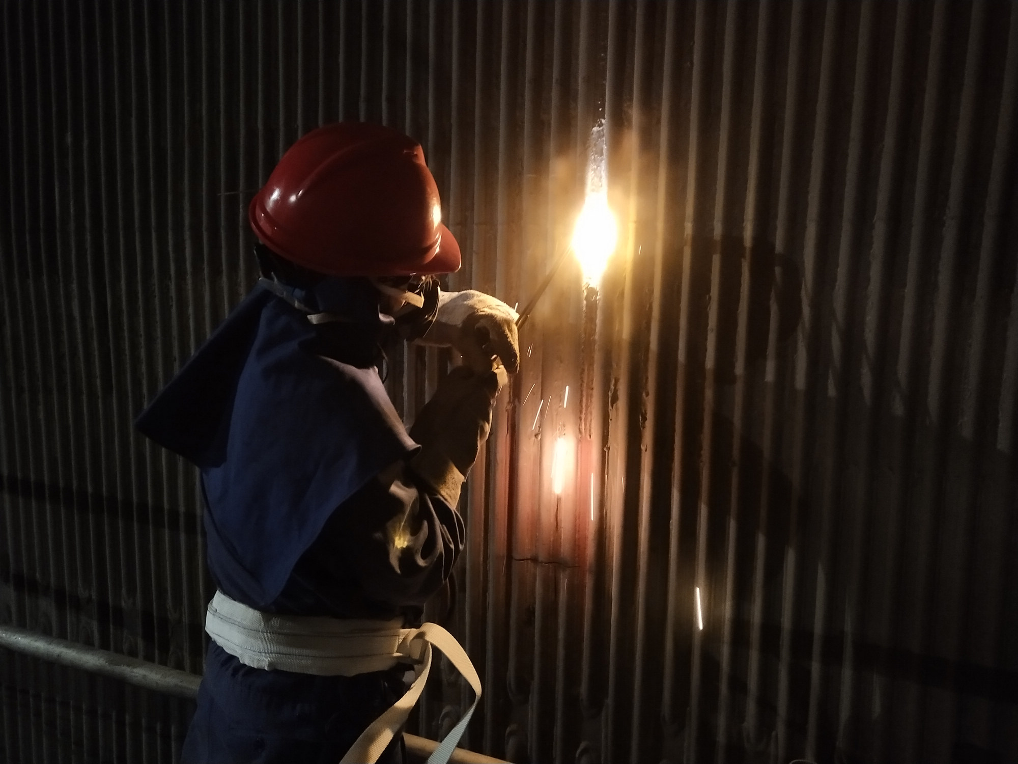 6月7日端午節(jié),在萬(wàn)家團(tuán)聚的日子,項(xiàng)目部鍋爐班開(kāi)始了#2爐水冷壁66根管道更換的前期準(zhǔn)備工作。爐膛內(nèi),煤粉、保溫渣,夾雜著鐵屑飛揚(yáng)。工作人員站在距地面56米高的腳手架上切除水冷壁管、制水冷壁管坡口、磨鰭片、清除管壁內(nèi)外銹,各小組有條不紊地開(kāi)展工作。至6月9日收假前,水冷壁管焊接前準(zhǔn)備工作已全部就緒,為節(jié)后焊接工作的順利開(kāi)展,創(chuàng)造了條件。 (趙 濤 王武軍)